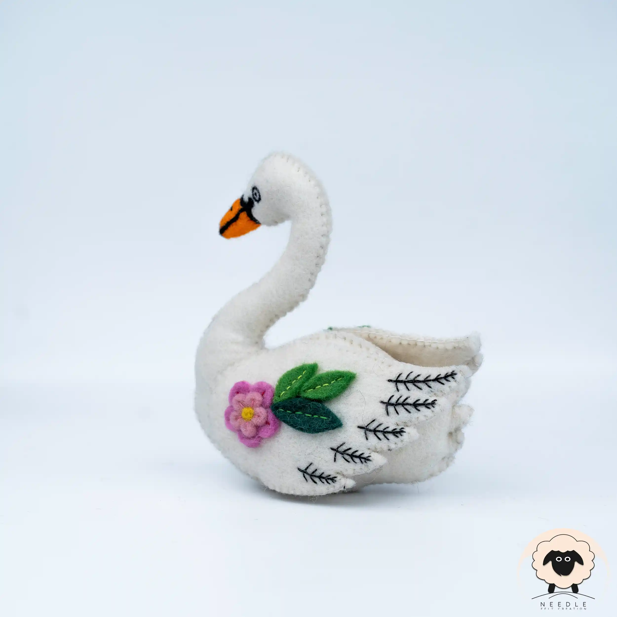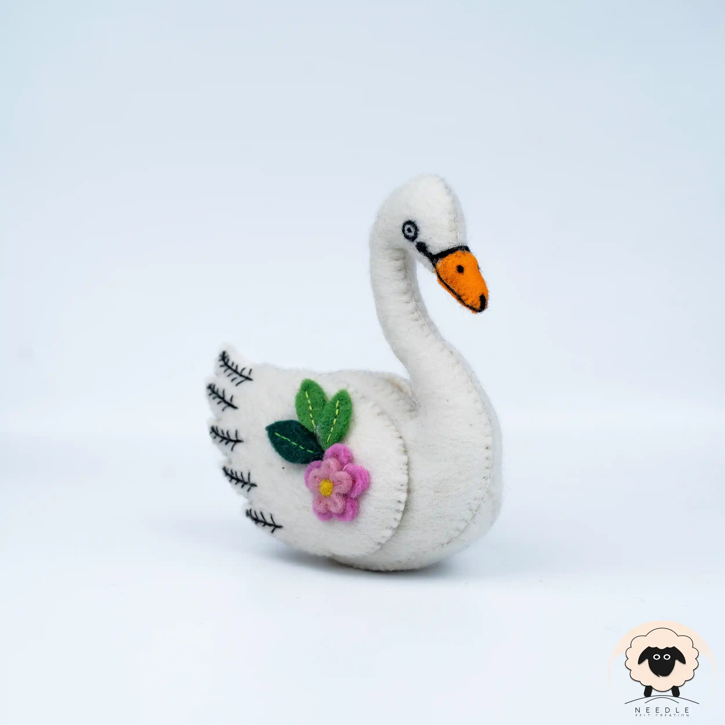 Floral White Felt Swan | Felt Animal Figurine