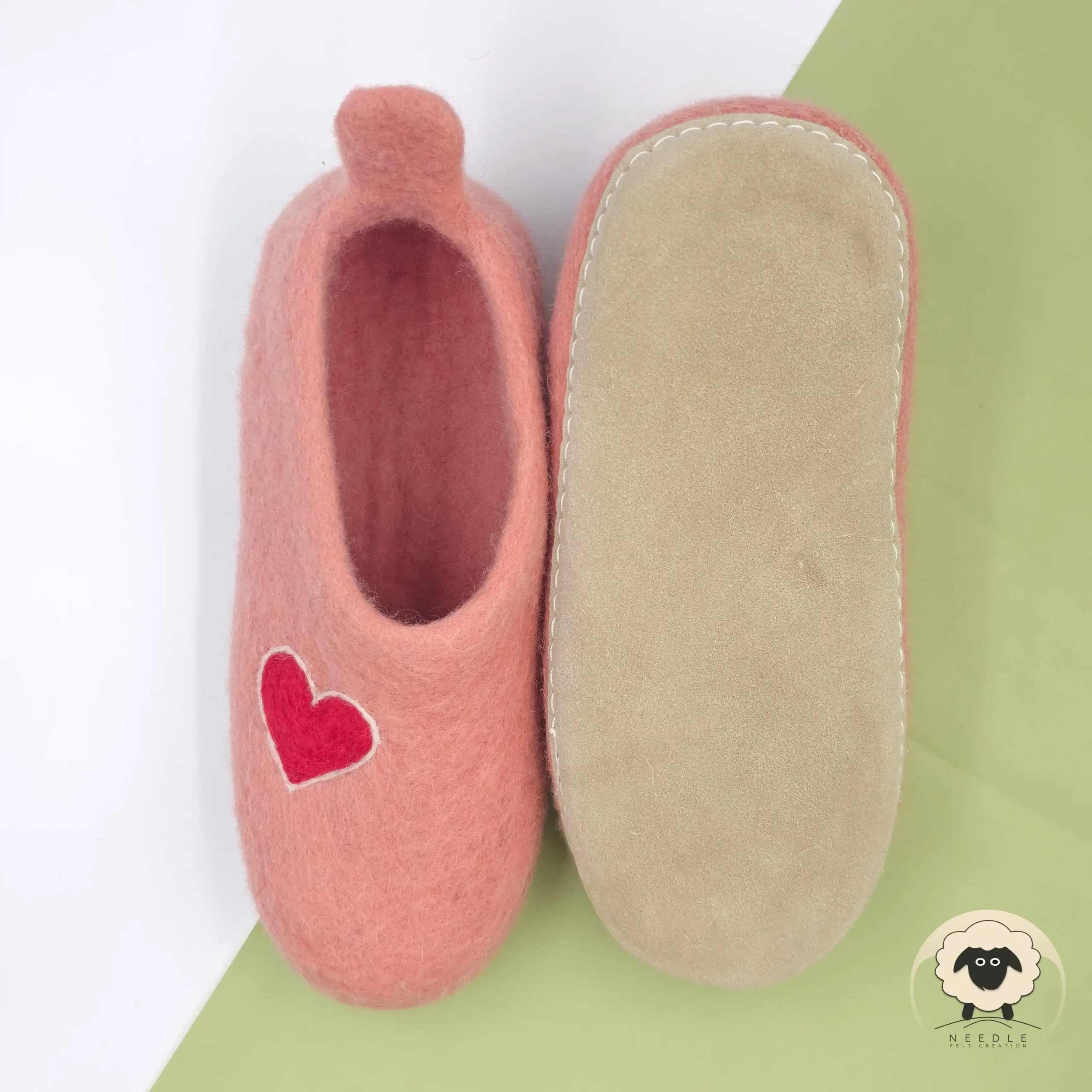 These pink felt ankle boots, with a charming heart design, are crafted from high-quality pure wool felt sourced from New Zealand. Each pair is expertly handcrafted in Nepal, showcasing outstanding artisanal skill. Needle Felt Creation is committed to sustainability, these eco-friendly boots are made using traditional felting and stitching techniques. The delightful pink hue is achieved with 100% Azo-free dyes, ensuring they are safe and environmentally friendly. Perfect for keeping your feet warm and stylish during winter.