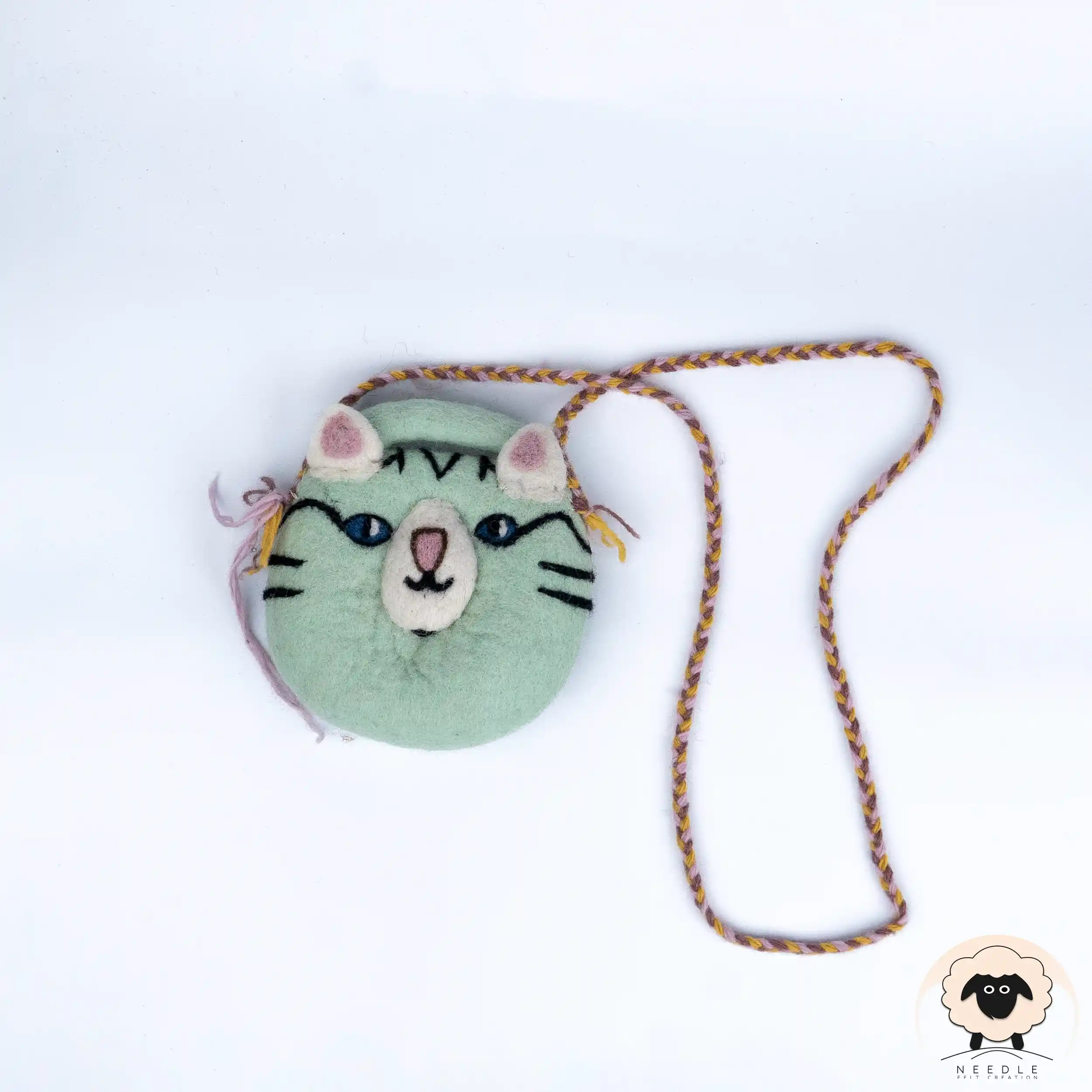 The Tiger Felt Hand Bag we have is not only a functional accessory; it is a high-quality example of eco-conscious styling for those who appreciate character-driven, artisanal craftsmanship. Crafted from premium, sustainable wool felt, this bag brings a soft and organic touch to daily wear without harming the planet. It is beautifully detailed with a soft mint-green base, a needle-felted tiger face featuring distinct stripes, pink-lined ears, and piercing blue eyes, complete with a long braided multi-tone shoulder strap. Every purchase supports ethical craftsmanship, combining environmental awareness with the timeless appeal of handmade art.